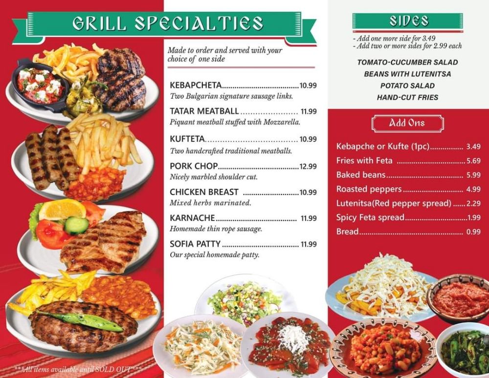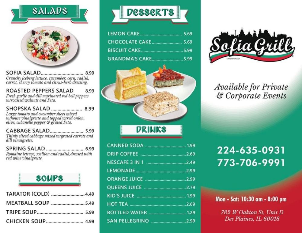 Welcome to Sofia Grill, a delightful hidden gem located at 782 W Oakton St in Des Plaines, IL. This charming eatery specializes in a vibrant menu featuring traditional Bulgarian offerings, primarily focusing on soups and salads.